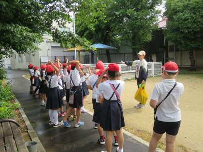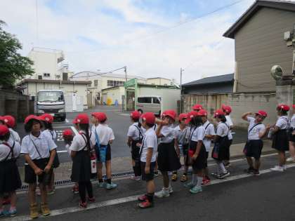 東西南北を確認しながら 北鶴橋小学校の校区をぐるり1周しました。神社や憩いの家、交番に公園など知っている場所ももう一度みんなで確認しました!