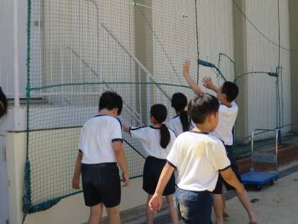 運動場の入り口にミストを付けました。早速練習後にミストへ・・・手を伸ばして・・・気持ちいいなぁ(*^-^*)