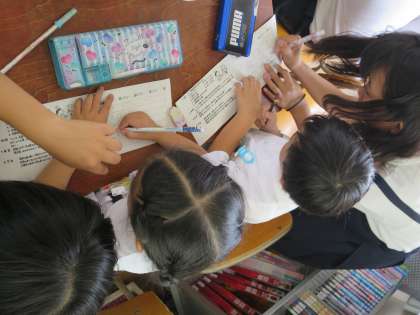 たてわり班遠足に向けて、班のめあてを決めたり、オリエンテーリングの並び方を決めたり、集合写真のポーズを考えたりしました。明日が楽しみですね(*^-^*)晴れますように!!