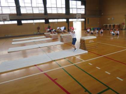 3段・4段・5段の跳び箱に挑戦中です。自分の跳び方はどんな跳び方かな?タブレットを使って録画をして確かめました。こんなふうに跳んでたんだなぁ・・・よくわかったようです!