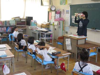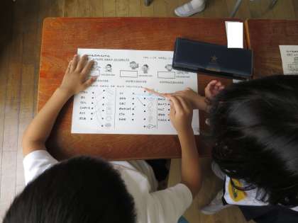食に関する指導がありました。たくさんの食べ物の絵と名前を一致させます。合っているかな?隣の友達と答え合わせもしました。今日の給食に使われている食べ物の名前もたくさん言えそうですね!