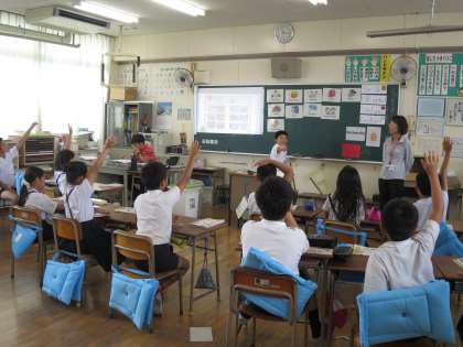 外国語活動の時間。今日は、月の言い方を英語で復習しました。先週初めて学習したのに、よく覚えていますね!すばらしい!ミッシングゲームやペアになってゲームもしたので、楽しみながら学習が深まりました。