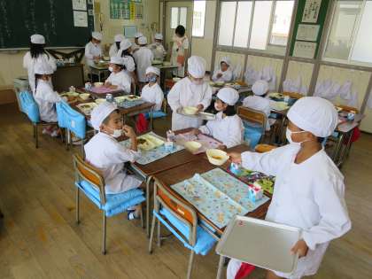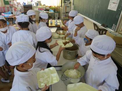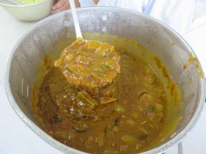 今日の給食には、夏野菜のカレーライスがでました。かぼちゃ、たまねぎ、なす、トマトにピーマン・・・夏野菜がたっぷり入っていて、栄養満点でおいしかったです。ごちそうさまでした。