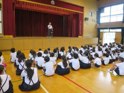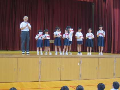 1時間目は終業式でした。校長先生のお話に続いてなわとび検定の表彰もありました。話を聞く態度がよくて感心しました(*^-^*)