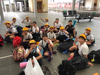 出発して駅に着くまでで、汗びっしょりの5年生!