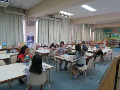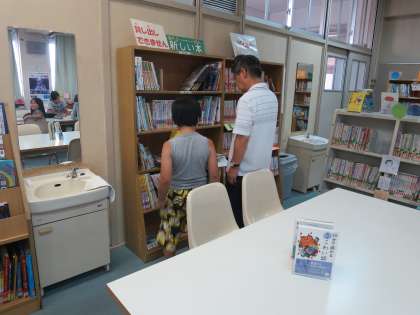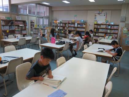 読書が好き!そんな気持ちが伝わるほど静か〜な図書室でした。黙々と本を読み進めています。図書ボランティアさんにおすすめの本を聞いて手に取る児童もいました。