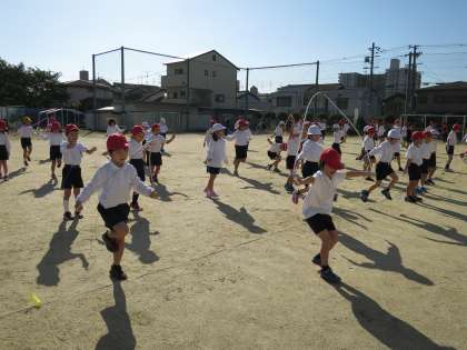 今日は、なわとび集会がありました。「勇気100%」の曲に合わせてリズムなわとびに挑戦です。できる技、まだできない技、もう少しでできそうな技、一人一人違いますが、目標を決めてがんばってほしいです。今月は20分休みにもこの曲が流れるので、張り切って挑戦しています!