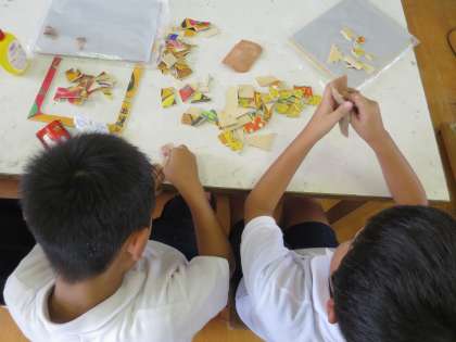 細かいパズルピースも、電動のこぎりを上手く使って切っていました。ピースを切った後は、やすりでツルツルにみがきます。完成が楽しみだね!