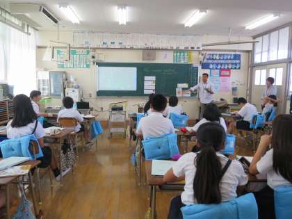 今日の外国語活動では、Small Talkに挑戦しました。今回のテーマは、それぞれの夏休みの思い出についてです。みんなの前で一人一人が自分の考えや気持ちを伝えます。ジェスチャーやアイコンタクトも加えて英語で発表しました。