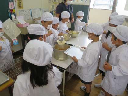 今日は、中秋の名月です。給食でも月見の行事献立でお祝いしました。今夜は、まん丸お月様が見れるかな?