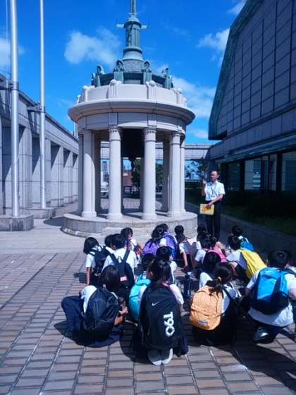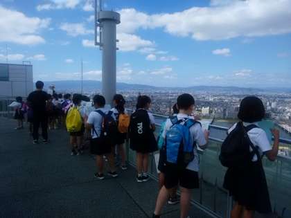 大阪市役所本庁舎と梅田スカイビルに行ってきました。まずは、中之島にある大阪市役所本庁舎へ。教育委員会の先生に庁舎内を案内していただきました。その後スカイビルへ。見たことのある建物や知っている建物を見つけて嬉しそうでした!