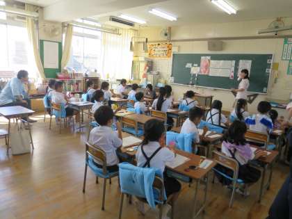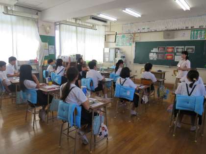 歯科校医の先生と教育委員会の先生をゲストティーチャーにお迎えし歯みがき指導をしていただきました。歯の染めだしやフッ化物塗布をしていただいたり、歯の健康と生活習慣のかかわりを学習したりしました。