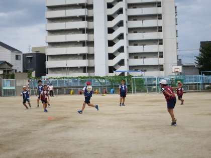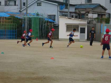 屋外スポーツクラブでは、サッカーを楽しみました。2つのチームに分かれて夢中になって試合をしました。