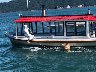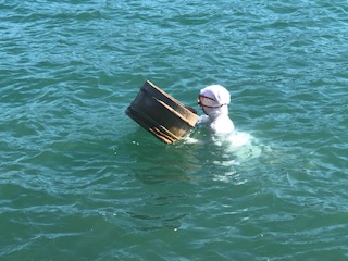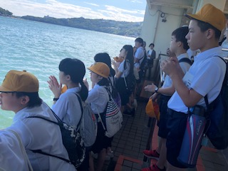海女さんの実演を見学します。水温は25℃。プールと比べて、寒いな〜すごいな〜と呟きが。自分の立場に置き換えて考える力、素晴らしい!