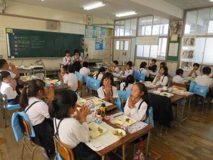今日の給食の「鶏肉のたつたあげ」は、子どもたちに大人気でした。みんなに3つずつ配り、少し余りが!じゃんけん大会です。衣の一つまできれいになくなりました。ごちそうさまでした。