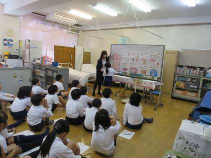 体重測定を行いました。順番を待っている態度のよいこと。素晴らしかったです。測定の後には、体の中にある臓器のはたらきを学習をしました。いろんな臓器があってそれぞれに大切なはたらきをしてくれているんだね。