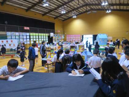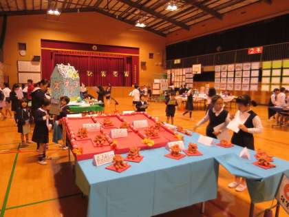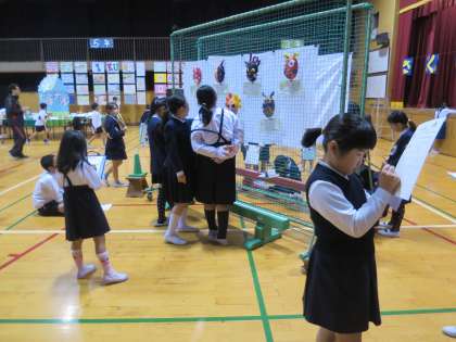 作品を片付けてしまう前に、みんなで鑑賞できる最後の時間です。鑑賞プリントを手に、全部の学年を見てまわりました。プリントに書ききれないくらい、たくさんの作品のいい所見つけをしたようです。