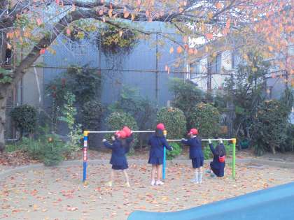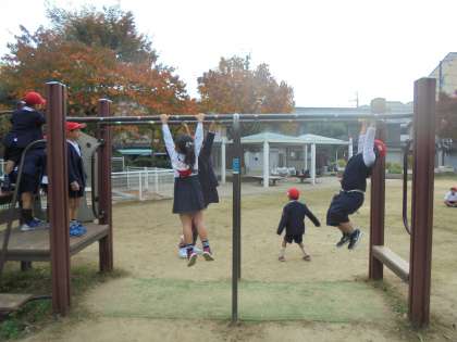 北鶴橋第2公園に行きました。春に探検した時とどんなところが変わっているかな?どんな葉っぱや木の実が落ちているかな?秋を感じながら、みんなで楽しく遊びました。