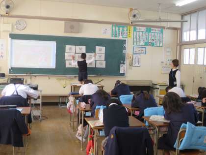 学校内のいろいろな場所を表す英語を学習しました。初めて見たお話のDVDからも、たくさんの英語を聞き取ることができました。さすがだね!!