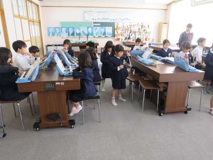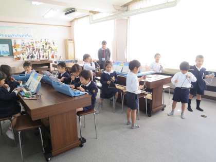 けんばんハーモニカとすずとトライアングルを使って「きらきらぼし」を演奏しました。いろいろな楽器の音色が聞こえてきて素敵でしたよ!