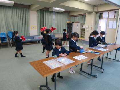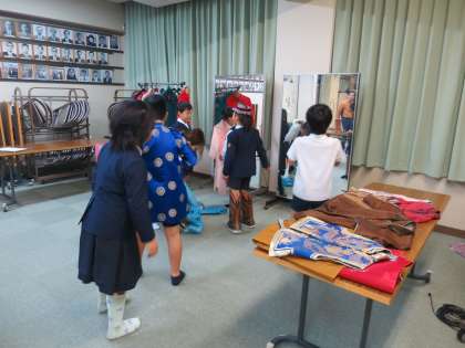 今週は、国際理解教育週間です。多目的室には、たくさんの展示物がいっぱいです。衣装を着たり楽器をさわったり、遊んだり・・・楽しい〜!!