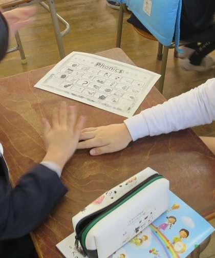 フォニックスを使ってキーワードゲームをしました。アルファベットには、よく似た発音があります。例えば「B」と「V」です!C−NETの先生に何度も発音していただいて練習しました。
