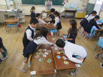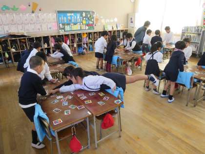 グループになって、あいうえおかるたをしました。一枚でも多くとりたくて、みんなやる気満々です。何の札が読まれるか、しっかり聞いて札をよく見て・・・取れると嬉しいね!
