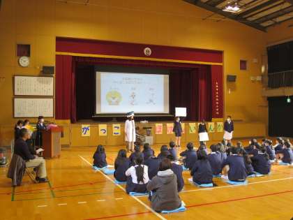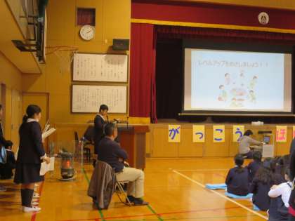 「いきいき北鶴元気っ子になろう」をテーマに、学校保健委員会を行ないました。健康委員・給食委員・運動委員の児童から発表がありました。説明や実技もわかりやすかったです。元気っ子で、冬をのりきりましょう!