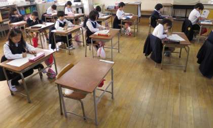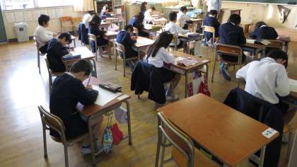 金曜日の朝は、聞く力を高める学習の一つとして全校でCDによるお話の聴き取りをしています。CDから流れてくる文を最後までしっかりと聞かないと正しい答えを書くことはできません。みんなすごい集中力でがんばっています。