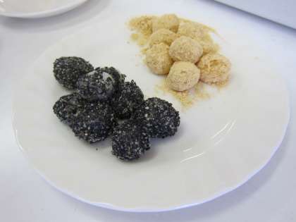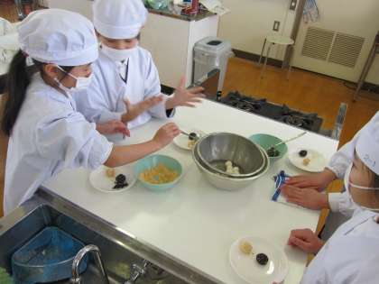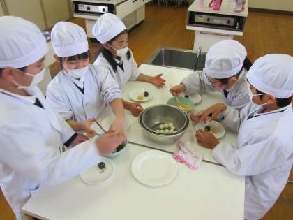 白玉粉でおだんごを作りました。こねて丸めてゆでて、最後は味付けです。きなこやごまをたっぷりとまぶして!おいしくいただきました。