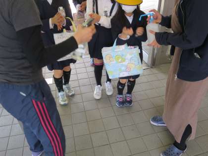 子どもたち、久しぶりで緊張していたのかな?なんだか恥ずかしそうでした。玄関で先生方にアルコール消毒をしていただき、教室へあがりました。
