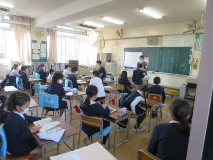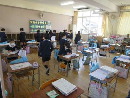 山のような配付物があります。お手紙や作品などがどんどん配られて、回収もしてと・・・。慌ただしいです。