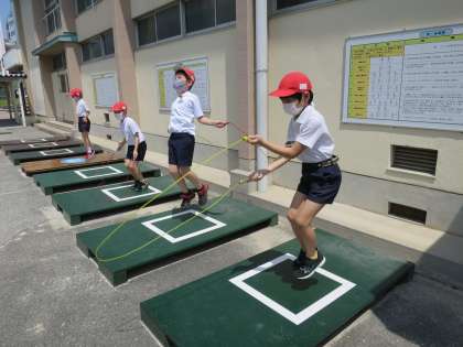 知恵を出し合ってソ−シャルディスタンスを保てる遊びを模索中!