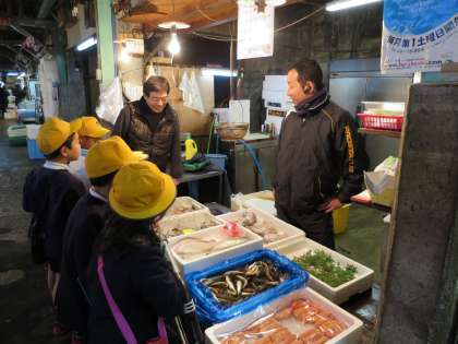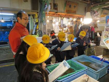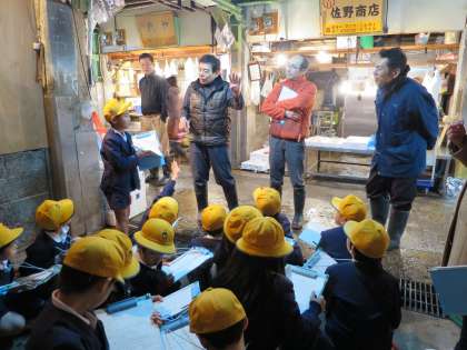 2年生が、鶴橋鮮魚市場に見学に行きました。魚や貝を見るだけでなく、触らせていただいたり、お店の方へインタビューをさせていただいたりしました。魚のことやお店の様子などたくさんのことを教えていただきました。ご協力ありがとうございました。
