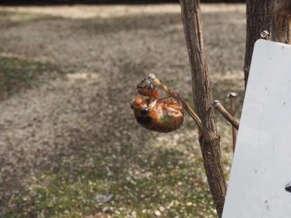 中庭で小さな夏の兆し(脱皮直前のセミ)を発見しました☆