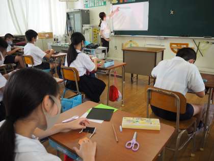 プロジェクターで折り方を確認しながらの作業でみんな真剣!!
