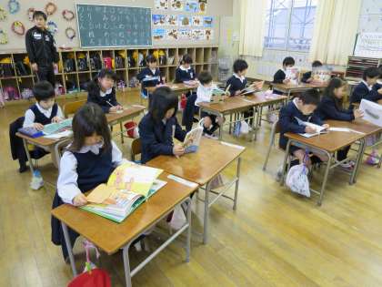 水曜日の朝は読書タイムです。みんなお気に入りの本を選んで黙々と読んでいました。静寂の中で落ち着いて読書ができています。