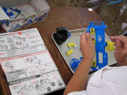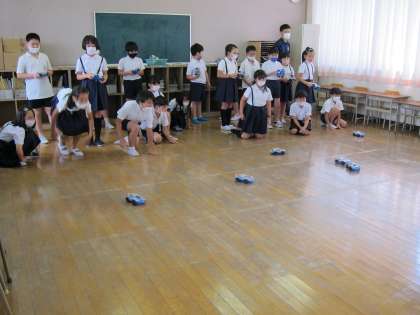 モーターカーを組み立てて、乾電池を並列や直列につないで、速さを確かめる実験をしました。みんな完成することができたので、となりの教室で夢中になってモーターカーを走らせました。楽しかったね〜(*^▽^*)