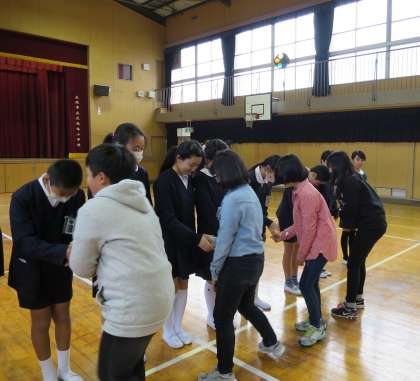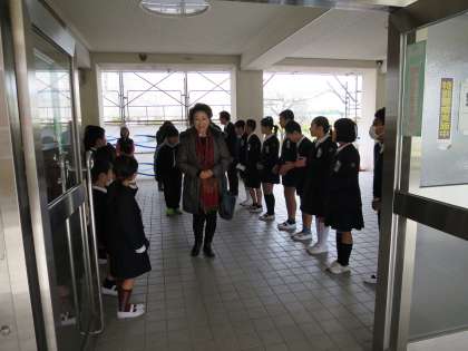 6年生とは、羽子板やかるたで交流しました。みんないい笑顔でしたね。お昼に各学年の代表児童に見送られ、名残惜しそうに学校を後にされました。