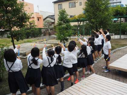 勢いよく飛び出した水できれいなアーチを描きました^^