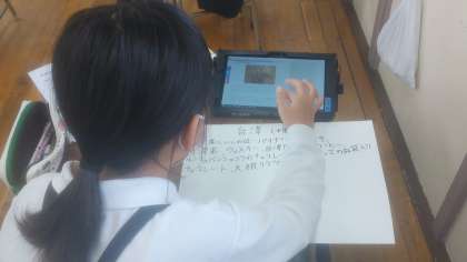 コンパクトなタブレットを活用して教室の机で行うと作業スペースが確保されます。