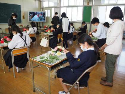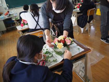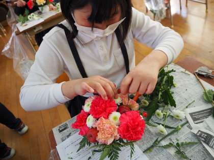 5年生は毎年行っている「フラワーアレンジメント」に挑戦!