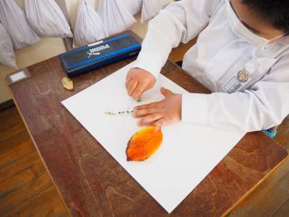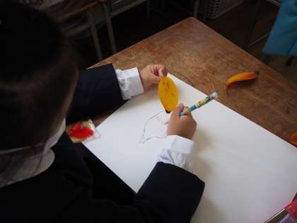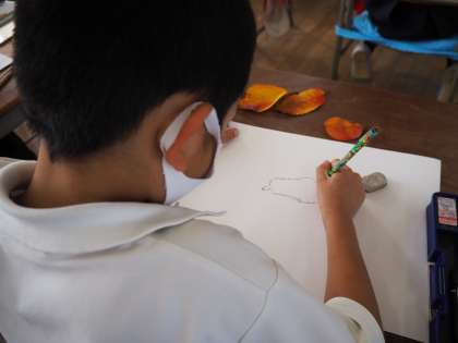 2年生が落ち葉を拾ってきてスケッチしていました。