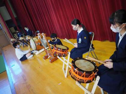 全体のペースを握る太鼓を中心にみんなで息を合わせます。