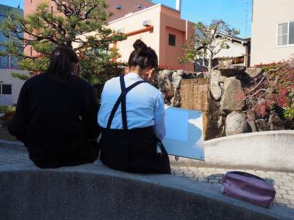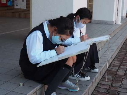 今日の4年生は中庭で「風景画」のスケッチをしていました!