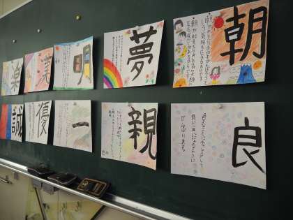 5年生が「2021年の抱負」を漢字一文字で表します。