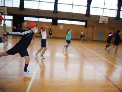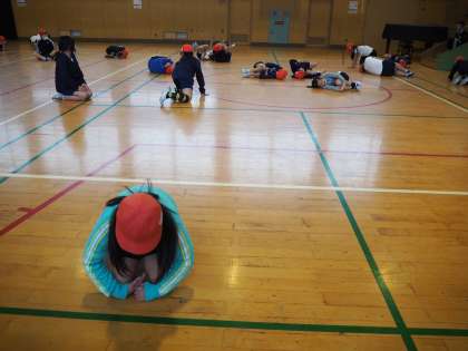 最初は照れくさそうにしていた児童もだんだん楽しくなって
