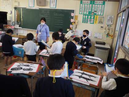 2年生の図画工作では、出来上がった版画の作品の鑑賞会が行われていました!!