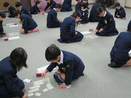 百人一首大会は、今日で終わりました。黄緑色の札の試合で、毎試合勝ち続けた児童は5人でした。おめでとう!学年を超えて楽しめる大会でしたね。