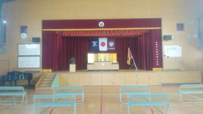 卒業生、教職員、同居家族(一家族長椅子一脚)での式となります。